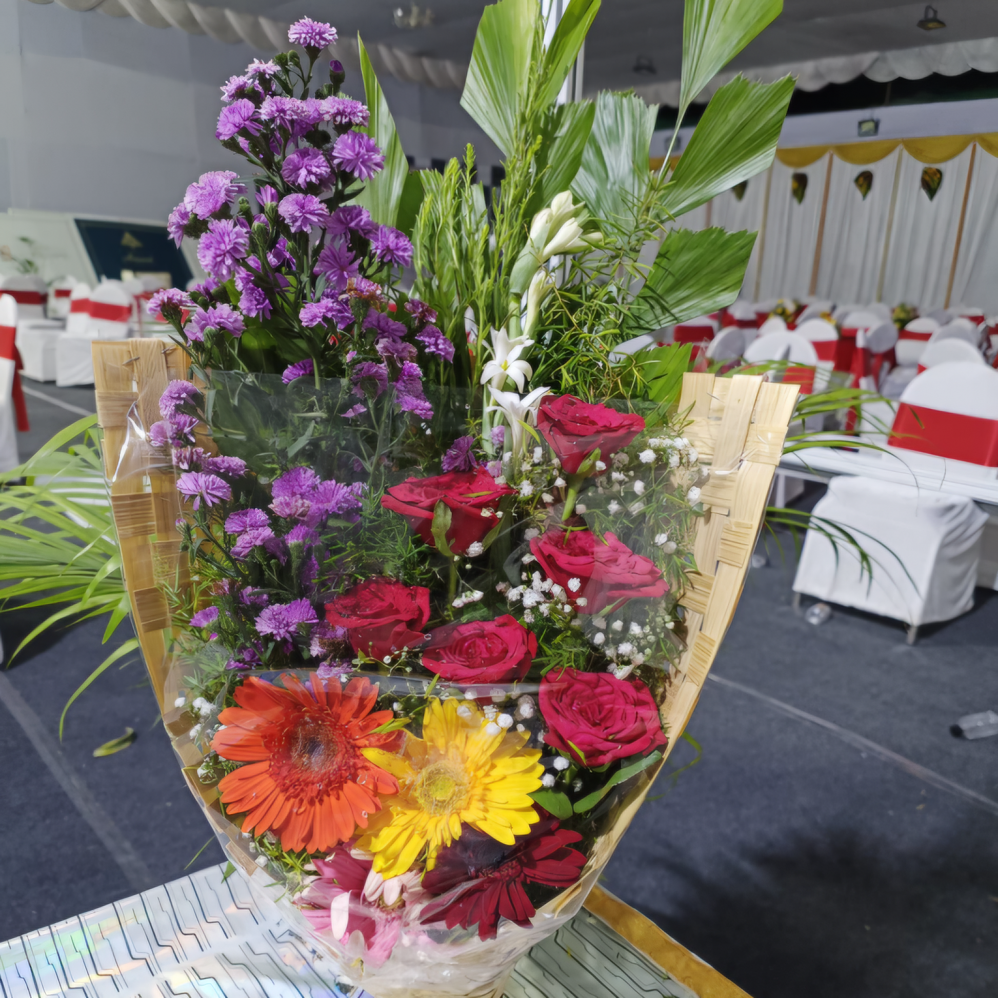 Enhance your wedding day with our handcrafted floral bouquet, featuring fresh, vibrant blooms selected to complement any bridal look. Ideal for brides, bridesmaids, or as a gift, each bouquet is carefully arranged to add elegance and beauty to your special day.